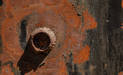 I really like how this rust grew... like the annular rings of a tree, it looks like each year the rust crept under the paint a bit more, leaving a record of each years expansion.