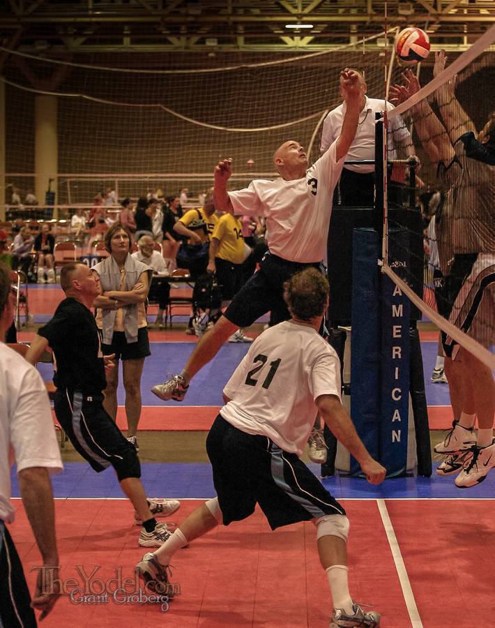 volleyball is an active and fast game. Here all of the volleyball playaers are getting into the action.