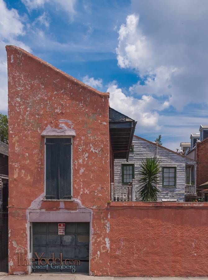 The rear part of a compound in the French Quarter of New Orleans. This part of the building was originally built for slaves. Slave quarters are recognizable by looking for a few things. They are generally behind the main house at the back of the lot, they are often perpendicular to the orientation of the main house, they are always small. Post-Katrina they are rented out as "efficiency apartments" for obscene rents.