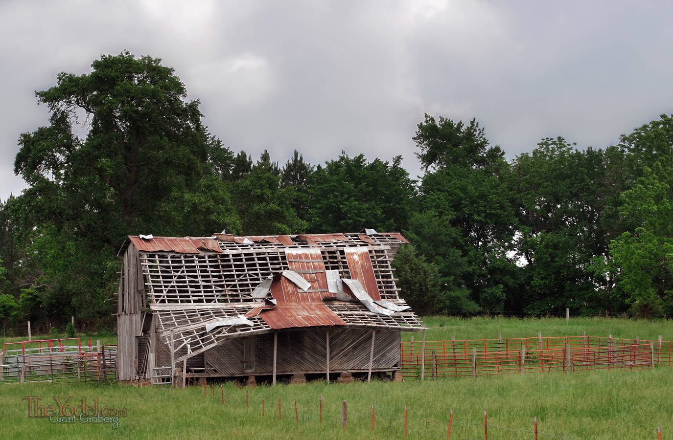 Not another wrecked old barn? Yes, indeed, some things never change, others you don't want to. Imagine the winds that helped to strip the tin roof off of this arkansas barn. I guess the chickens are going to get a little wet when it rains.