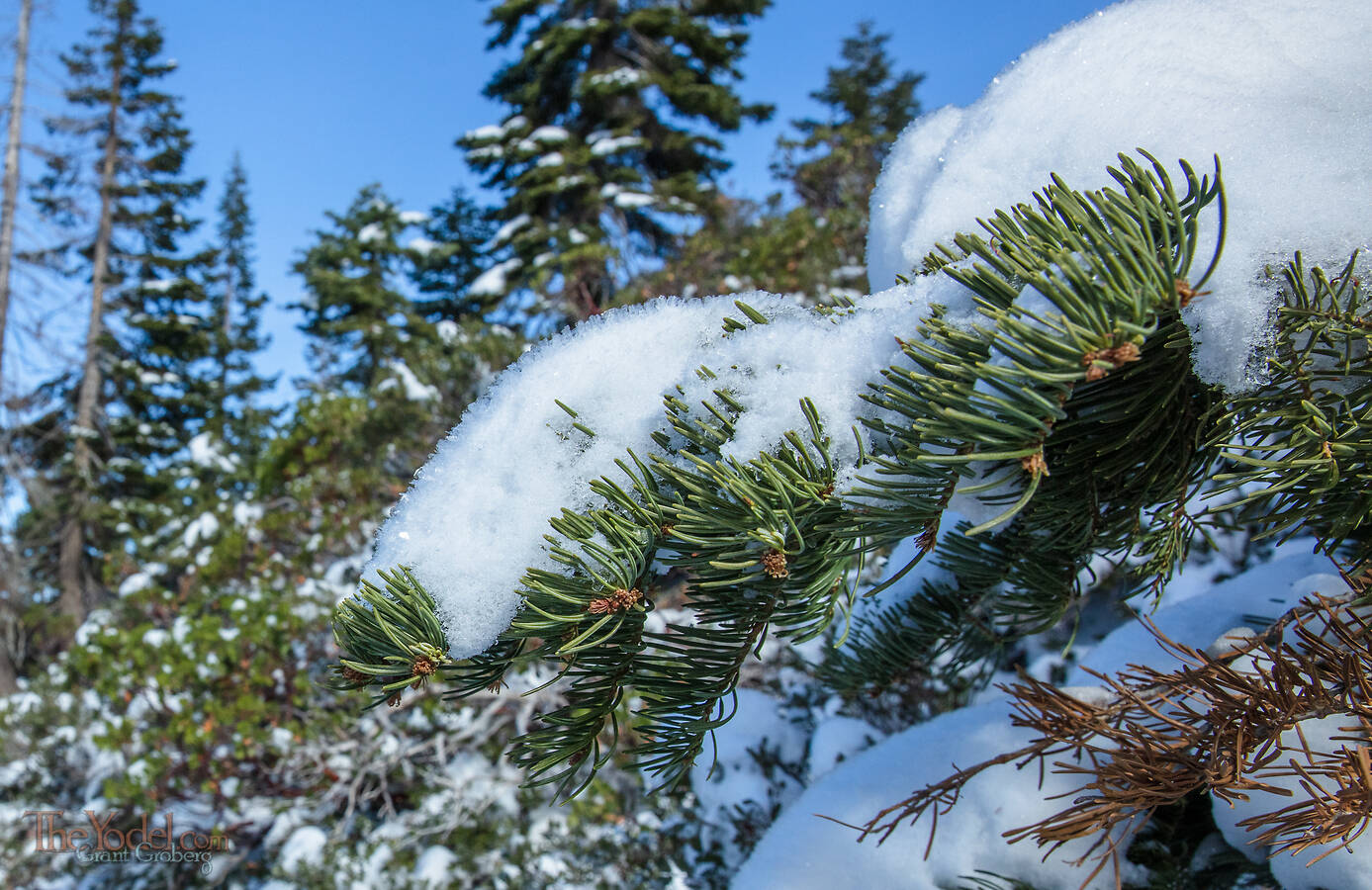 The crystals growing out of the snow made it look furry... So I needed to take a picture of it on a fir tree.