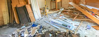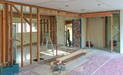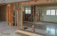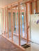 The far end of the beam is supported by the external wall of the house with is supported by the foundation. You can see that they have framed in the new opening of the family room. Please note the door to the Garage. Painted blue with flower pictures from seed catalogs pasted to it.