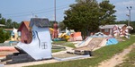 Is it a Dragon or is it a Sea Monster? There is no one about to ask. This miniature golf course in Mobile Alabama has long been in disuse. Nevertheless the Dragon/Sea Monster waits patiently for some curious, careless child to wander by. In the blink of an eye the creature will wake and swallow the child whole and no one will be the wiser.