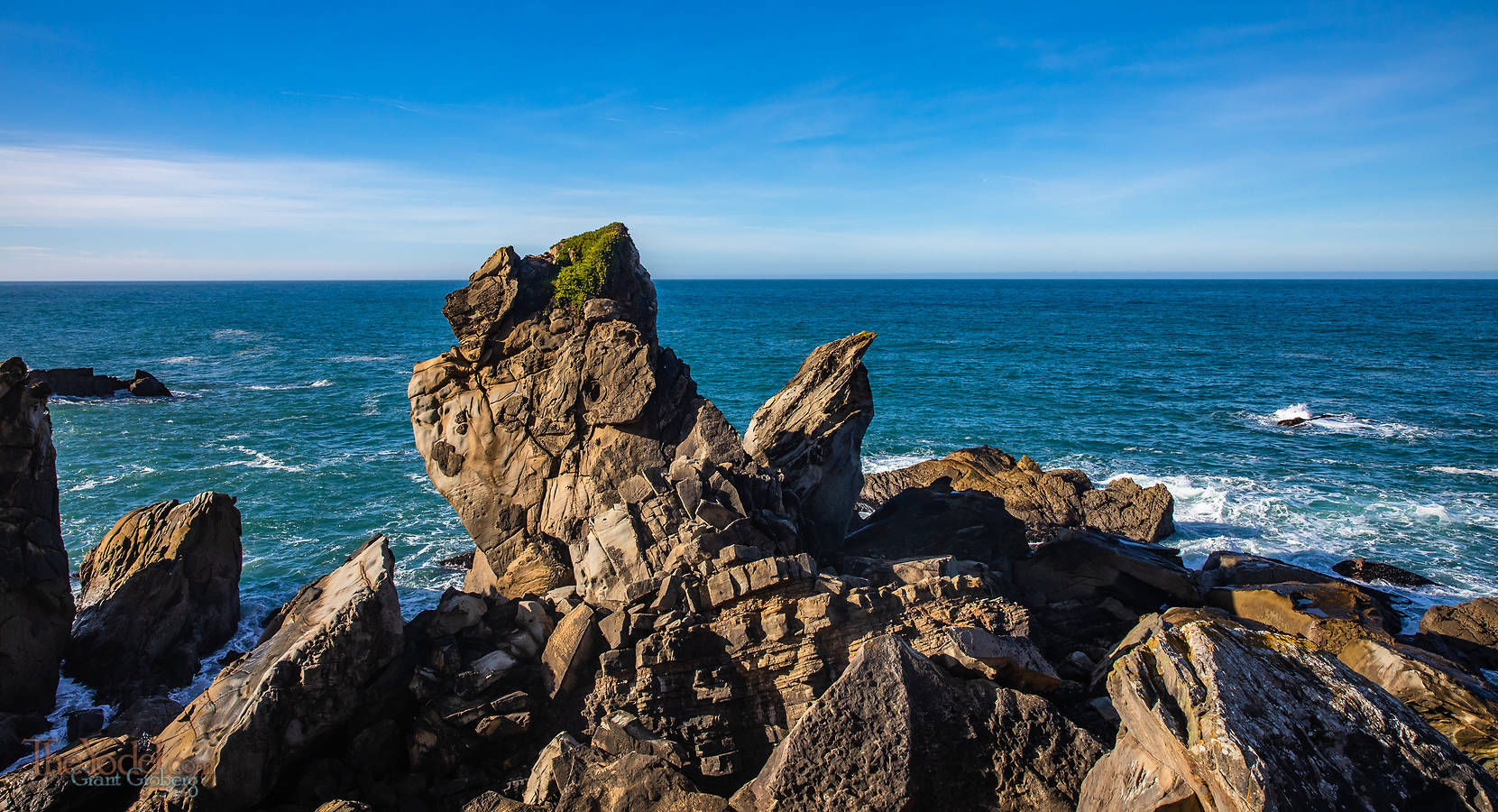 Really big. From the ocean all of the way up to the sky! Giant shards... They probably don't looks so huge in the picture, but the rectagular-ish one is over 100 feet... it may not be Half-dome, but it sure isn't sand.