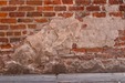 Look up, look down, make your eyes move all around, All kinds of nifty things can be found. This little segnent of wall is one of them. Decades and decades of weather and wear have pulled and worn the cement stucco from most of this wall except for this small continent way down against the sidewalk.