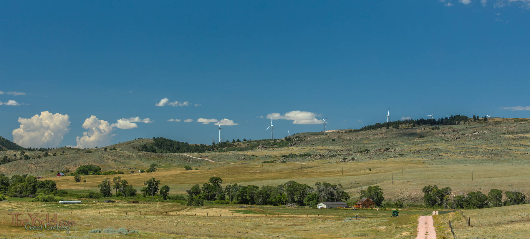 Windmills on the ridge, a farmstead in the foreground... Now which one of those trees will I hang my hammock under?