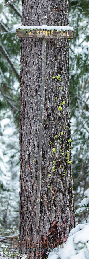 Placed 10 feet or more above the ground, I suppose that when this sign pointing to the "Spring Trail" is at eye-level Is about the time that you need reminding that Spring is just around the corner.