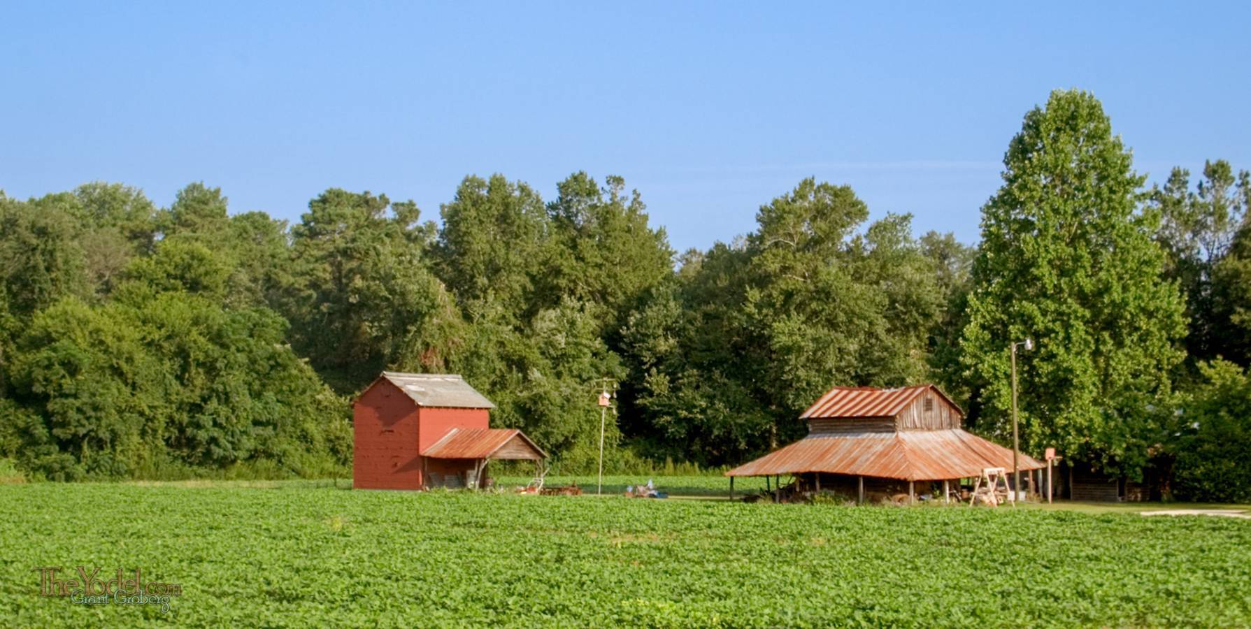 Here are two farm buildings that I found in the North Carolina Lowlands. If you look carefully you can see how the building on the left was originally a single tall, skinny structure. Later on they farmer built the wide awnings around it so they could store their equipment in a dry spot.