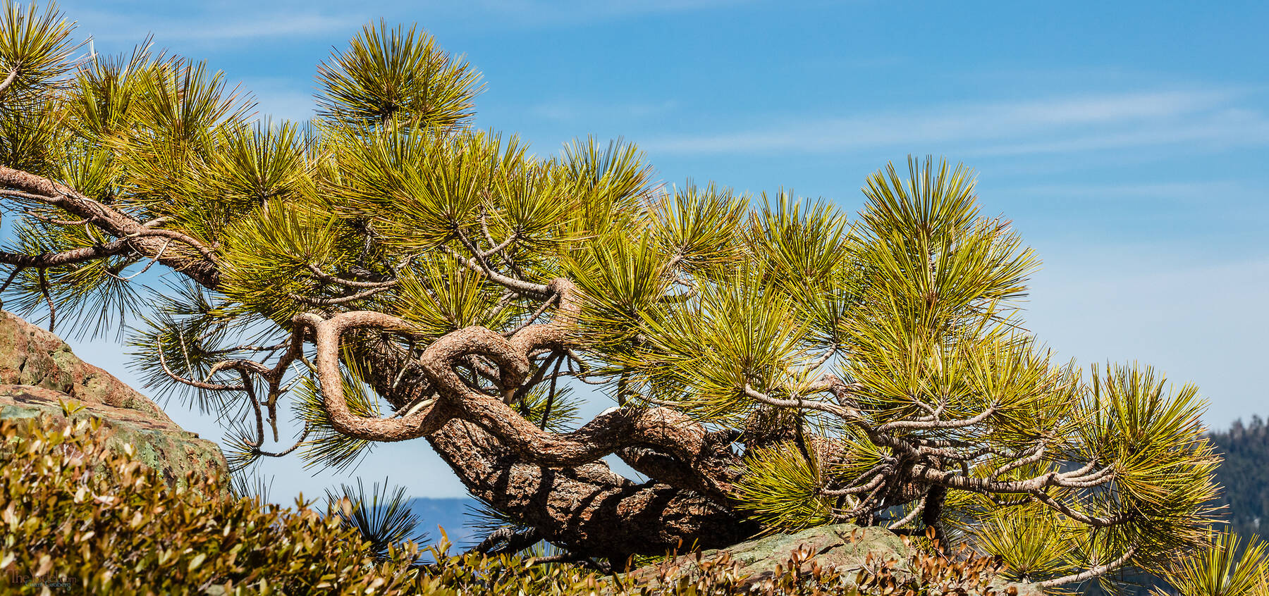 The constant breeze has contorted this pine into an interesting configuration. In a couple-hundred years it's going to be pretty interesting.