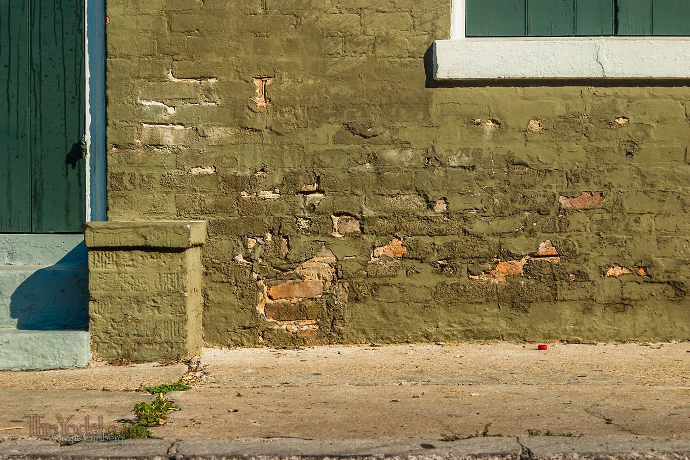 Heat and humidity are the friend of the person who likes taking pictures of weathered paint on walls. Combined with the slight shifting that almost all structures in the French Quarter are subject to, no wall has a chance against the ravages of time without regular maintenance. This particular wall is no exception and it seems it has been a month or two since someone has paid attention to it.