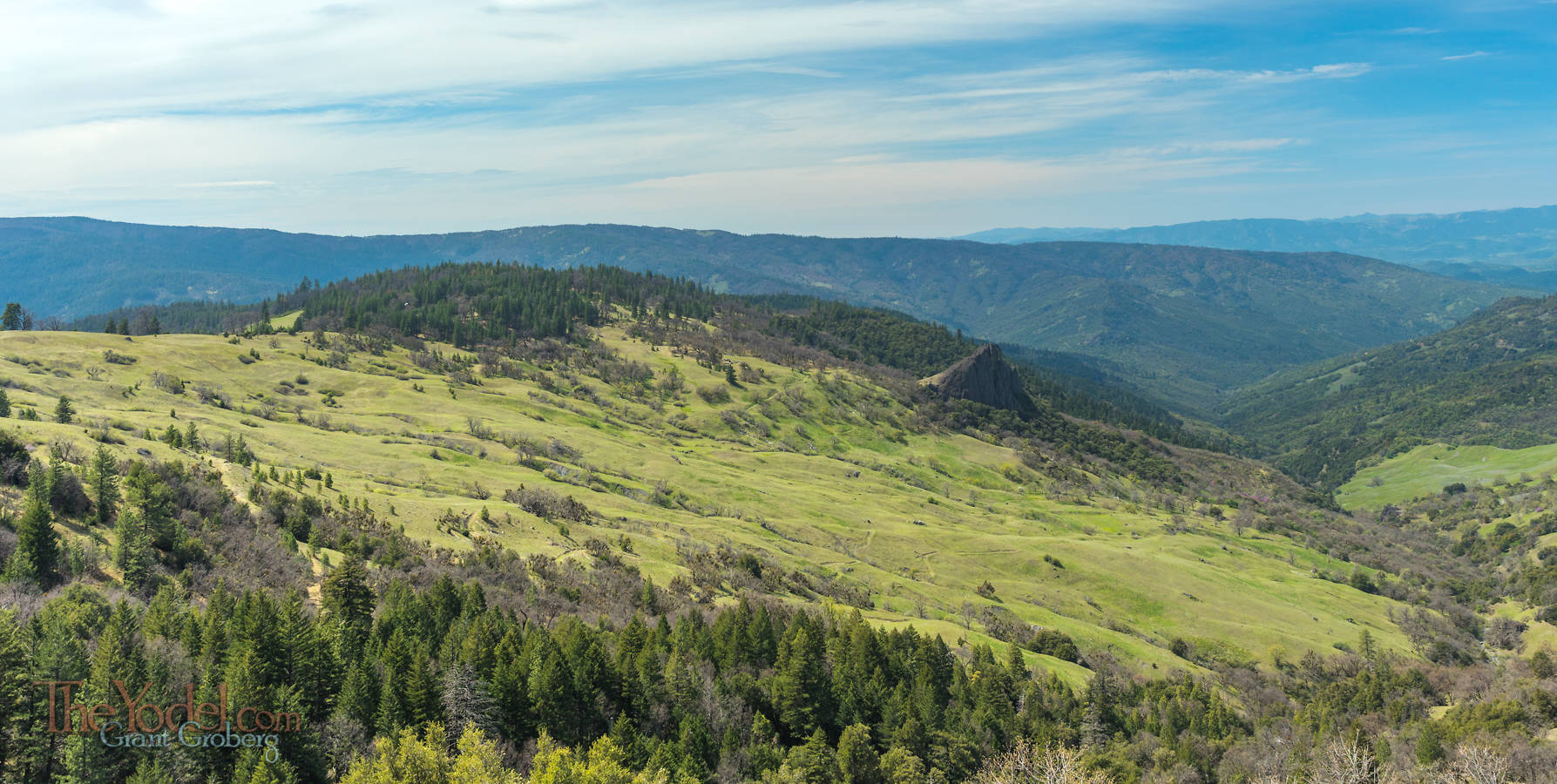 That big, green slope is a few miles long. There is something about it what make one want to start at the top and run down the whole length barefoot... Of course that is not to be done. once again we find another big chunk of rockin the midst of erosion... volcanic action of long ago?