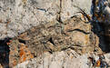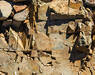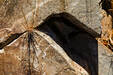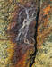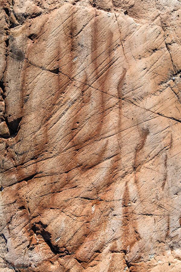 This is a fun rock surface... Not only do you have the lovely flame pattern from iron precipitating through hairline cracks, you have long gouges caused by glaciers scraping stones over the surface from the upper right to the lower left... And these scrapes have two angles as if there were more than one glacial orientation ... That part is interesting because this is the surface of a thick strata of stone diving into the ground, not just some rock that got tumbled about to get a new angle on things.
