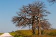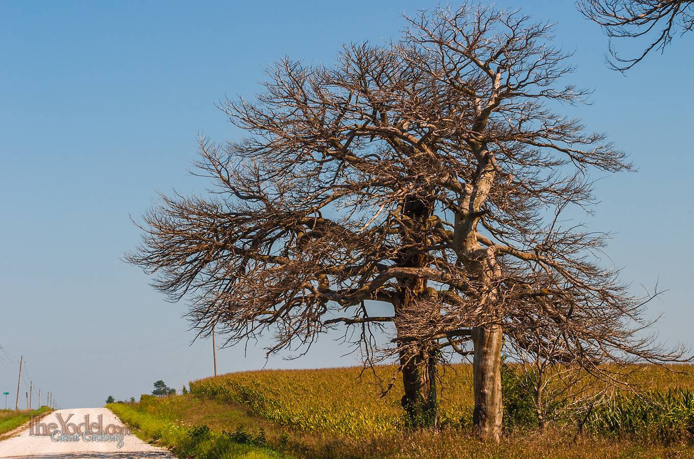 These dead trees are still standing by the side of some road in Iowa. The one in the back probably won't make it through the next winter.