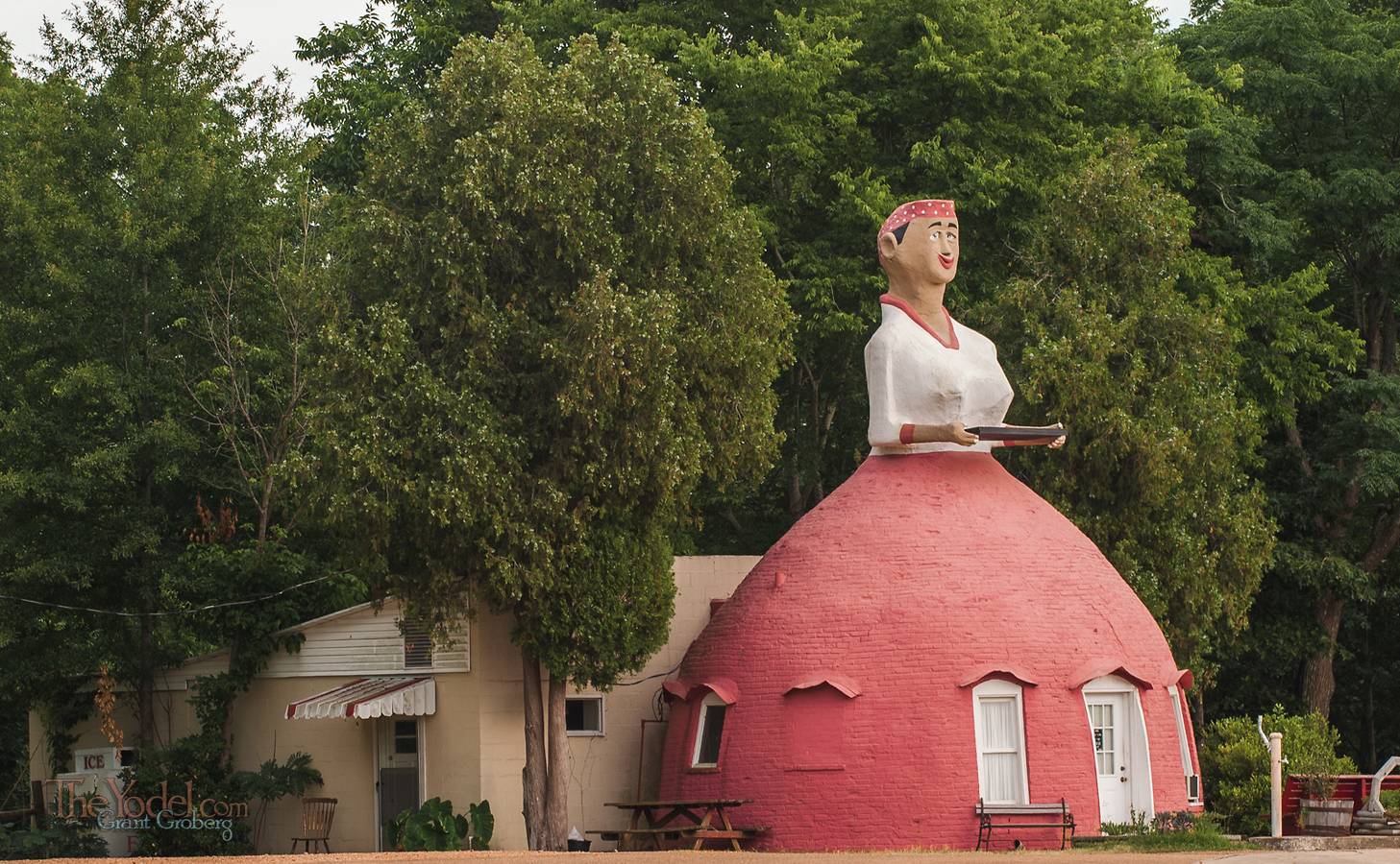 They don't make buildings like this any more. This is folk art. the dress is constructed—igloo style— of bricks, the upper torso is ferro-cement. the restaurant is inside her dress.
