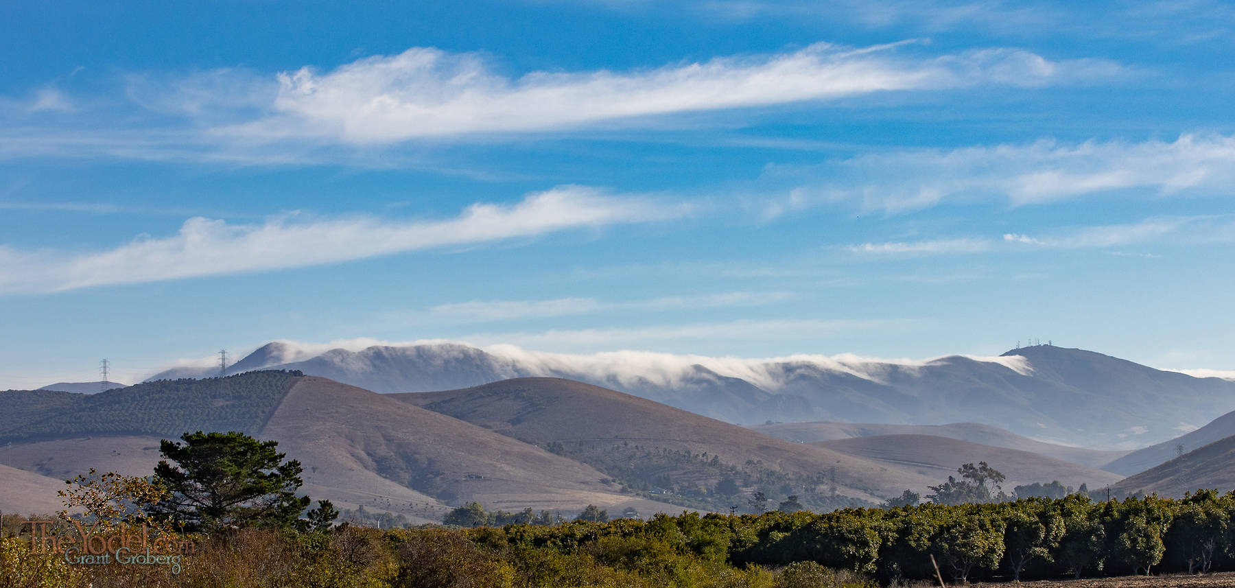Fog breaking from inland toward the ocean