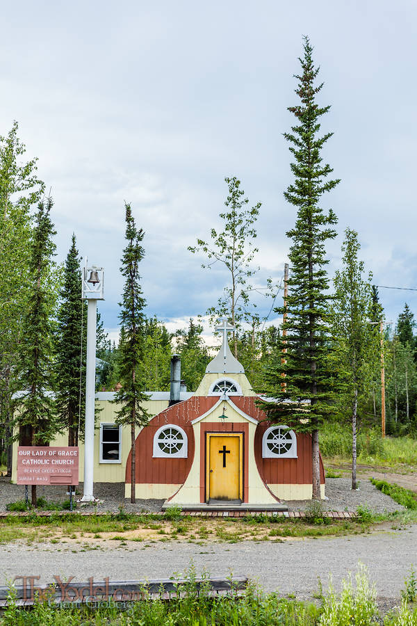 Located at the edge of Beaver Creak, Yukon, Canada, the "Our Lady of Grace Catholic Church" comes across as a piece of folk art. It's proportions, particularly with the tree just outside it's door, are perfect!