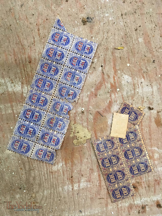 Blue Chip Stamps from some time in the 60s or earlier had been underneath the counter cabinets for more than half a century.