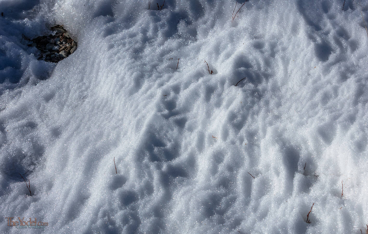 One day I walked through a long open area. Over the night the wind had sculpted these patterns in the down-wind end of the field. When I was walking past a few hours later this was all gone.