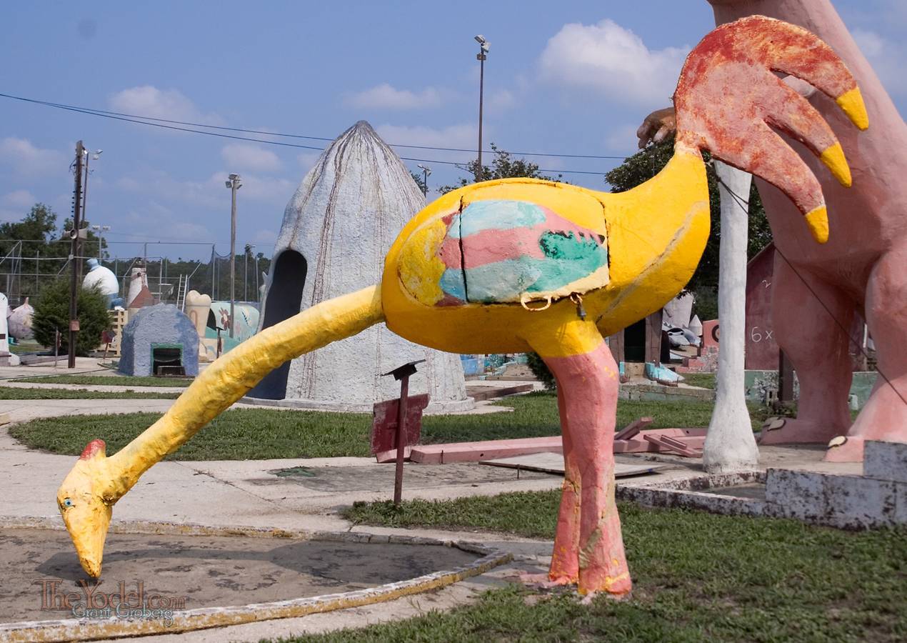 This might not be the most accurate rendering of a chicken ever made… perhaps it is an Ostrich. Back in the day, when the whole miniature golf course (in Mobile Alabama) was in its glory this chicken guarded the hole by bobbing its head up and down. Ah! A mechanical marvel! A cement chicken that bobbles it's head! I wonder how many slow hands were mashed trying to retrieve their ball.