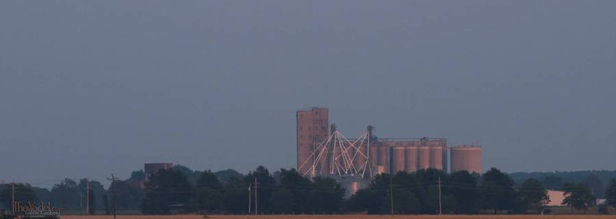 Imagine yourself amongst the rice fields of Arkansas. Wide, open spaces, precisely leveled and flattened with an Ausburgian attention to detail. The carefully planted rice is short, looking like bad hair plugs. You can see for miles and for miles all you can see is more rice paddies. The temperature is ninety-plus, humidity to match. The monotony of the scenery conspires with the oppressive heat, numbing you, washing your mind clean of thought. You see the horizon wrinkle, smooth linearity broken as structure emerges from the earth into the muggy sky; the air, dense with vapor, paints it indistinct and smeared on the canvas of the skyline.