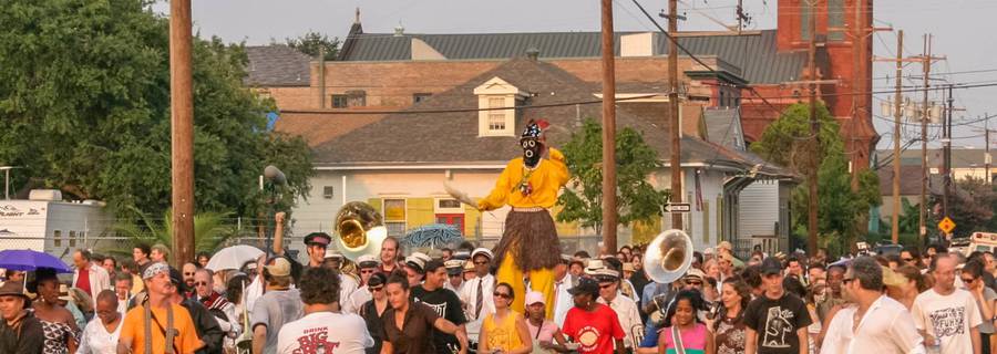 A second-line parade has it's roots in the New Orleans jazz funeral. They carry on many of the same traditions leaving out the casket, the mourners and the visit to the cemetery. The second-line for Kufaru was set to start in the Marigny district at the Caffeo coffeehouse and gallery.